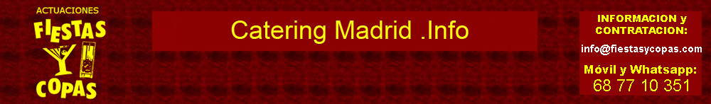 Hoy en día los cócteles y los caterings son cada vez mas frecuentes en todo tipo de eventos y fiestas, a nivel particular, de empresa o institucional para solucionar comidas, cenas, picoteos, desayunos, almuerzos, coffee-breaks, meriendas, vinos españoles, buffets etc. Catering Madrid .info te ofrece las mejores soluciones a los precios mas competitivos.